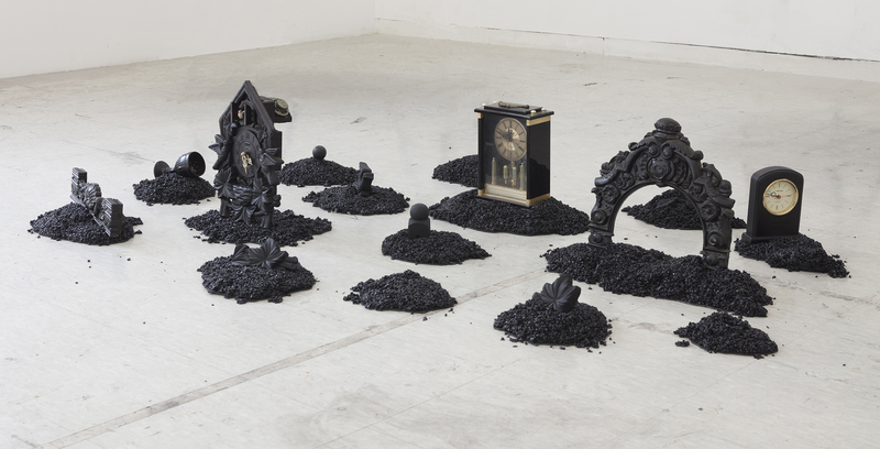 잠들지 못하는 / 수집한 오브제와 아스팔트 / 가변크기 / 2017