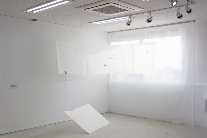 일상에서 발견한 아주 조그만, 단서로써의 사물들을 그렸다. 내가 바깥 세계에서 학습한 이미지나 방식들에 관한 일종의 기호들이었다. 그것은 일목요연한 이야기의 형태로 읽혀지는 것이 아닌, 띄엄띄엄, 겨우 얻어지는 약간의 파편들이라고 할 수 있을 것이다. 그들이 놓여 있는 공간은 종이의 프레임과 변을 같이 하지도 않을 뿐더러, 보이는 그대로라고 속단할 수도 없다. 우리는 그것이 보이지 않는 기울어진 바닥에 놓여있거나, 조금 떠 있다고 생각하게 된다. 콘크리트 벽과는 다른 성질의, 얇고 투명한 원형의 막을 생각했다. 그 안에 작고 미미하게라도, 내가 감지할 수 있는 신호들이 있었다.